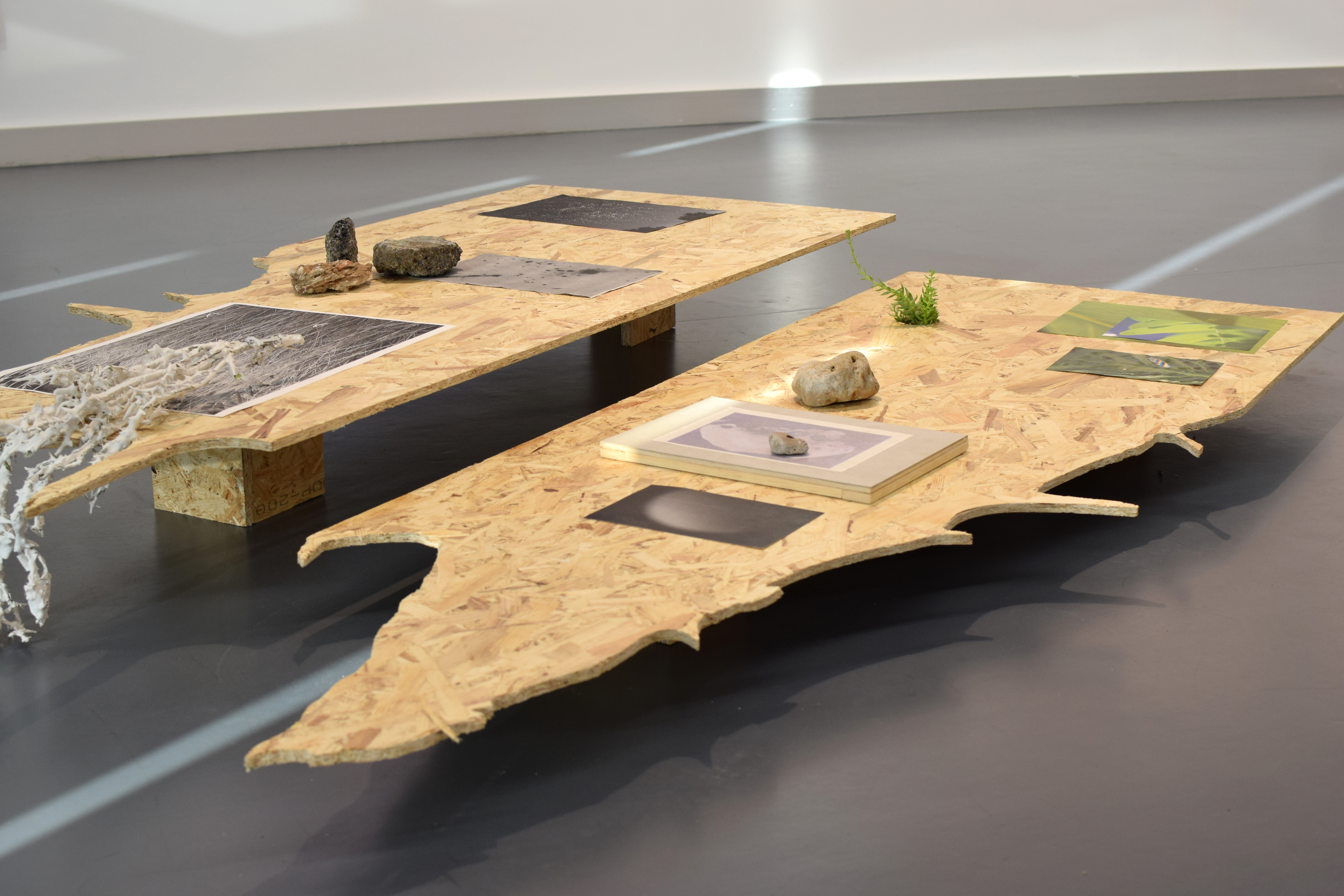 This exhibition represents a constant interplay between the relationship of the artificial with the natural. It deals with how we depend on nature, yes, but also how we influence it, how we affect it, how we conquer it, and how it reclaims us in due time. One can simply look at "Life Without Us" and realize that beyond the Hoover Dam, radioactive waste, and plastic bags, we will leave very little permanent trace before our structures are overrun by flowers. And flowers are the subject, at least initially. Flowers and images of flowers, "This is not a pipe" was said in the twenties, "This is not a flower" we could say in the twenties. Just as humans intervene in nature and nature in us, these artists intervene in the images they create, with modification after modification. From the wildflower to the image of the treated, modified, superimposed wildflower exposed in multiple formats. Black and white with impossible frames that could be the work of Maya Deren. A game of mirrors in full force, one that disorients and hypnotizes us, but also strangely brings us closer to the subject portrayed. Closeness is also the issue, along with the distant and unattainable. Here, boundaries blur, a mundane stone we see every day and pay no attention to becomes a lunar rock or even a fragment of the Kuiper Belt, while stars at a googolplex distance and unimaginable size appear as mere reflections in the water. The tactile is so present that it seems we can touch the cosmos and bathe in the constellations. Well, maybe not bathe, but we can touch the asteroid belt thanks to the rock constellations on the ground, as close to our hand as they seem distant; a reality hidden until one takes notice.