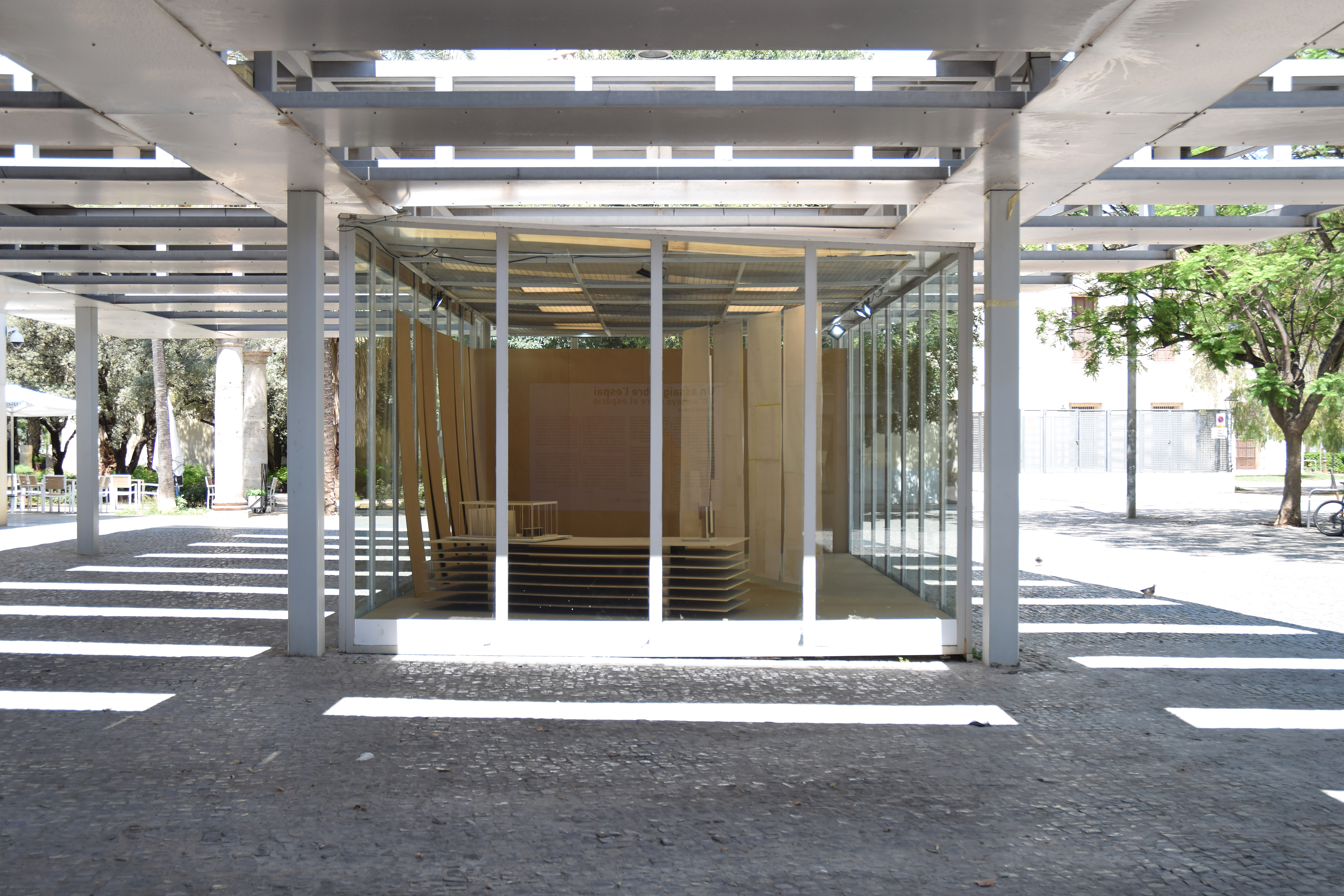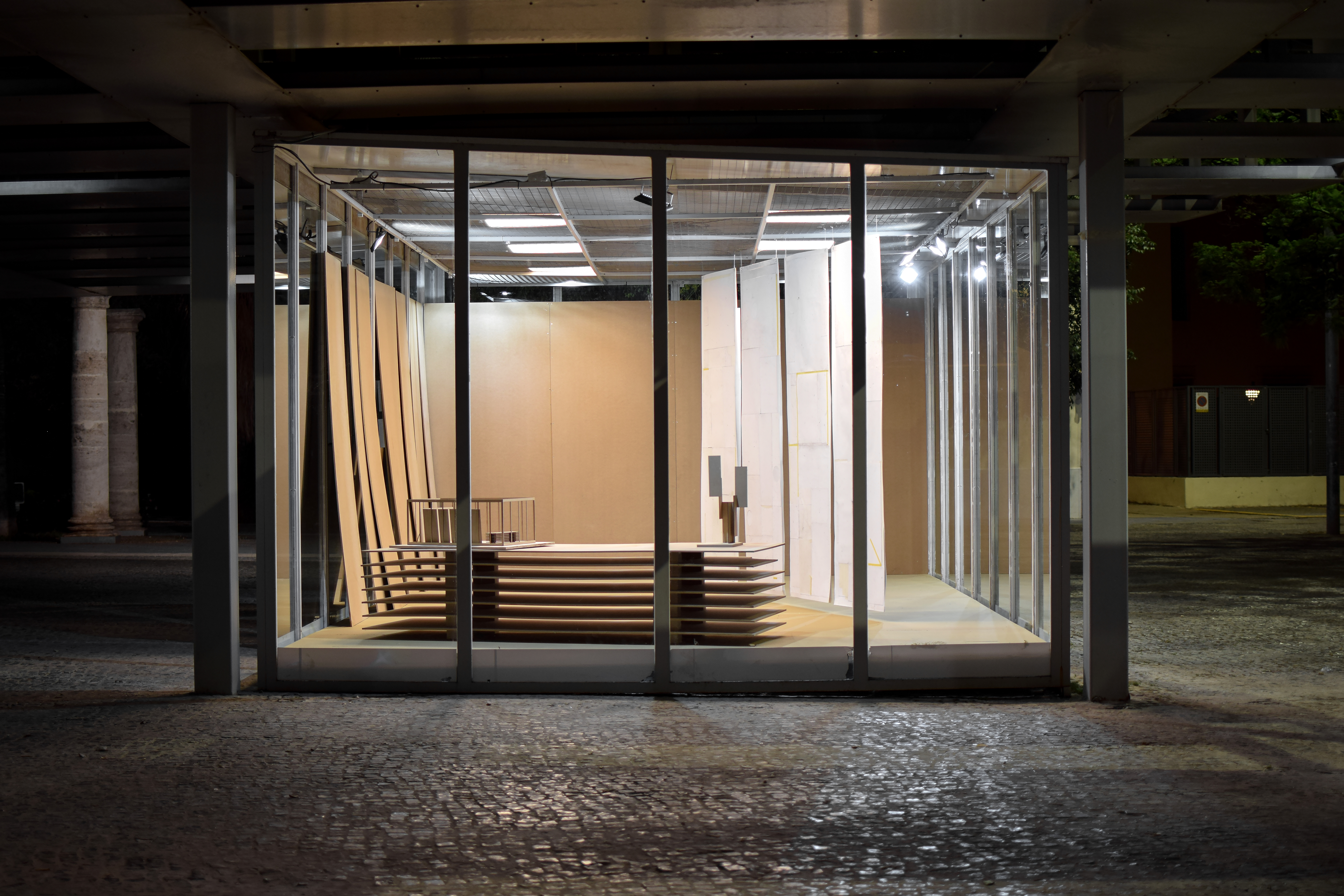 Considering the speculative nature of the glass cube, the installation offers a fleeting look into the artist's studio, constituting a simulated scene, like a theatrical set that incorporates elements of the stage machinery. It is a simulation that allows glimpses into the intricacies of work and transforms the project into a work of art, something characteristic of Ponce's work. Furthermore, in a certain sense, there is a "Deleuzian fold" when the artist presents a staging of his work process as art.